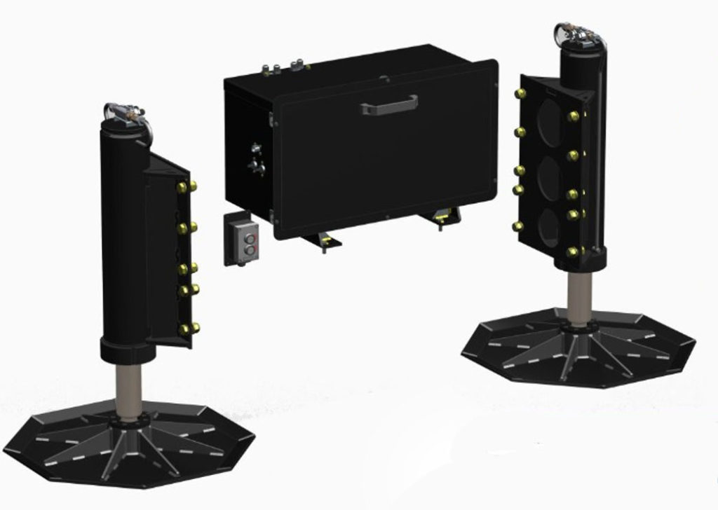 Pé de apoio e aparelho de levantamento para implementos rodoviários. A opção ideal para agilizar o processo de engate e desengate do caminhão no semirreboque, além de ser ideal para acomodação do implemento em terrenos irregulares